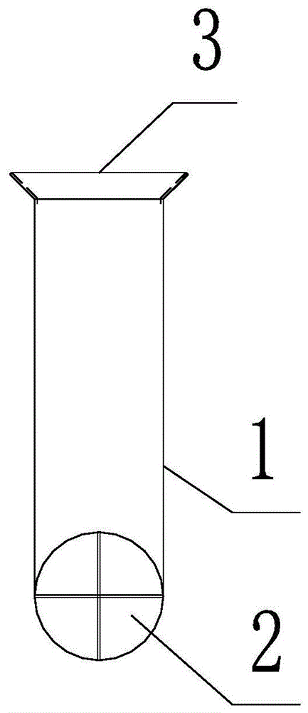 沉淀池套筒閥通過連接的管道和沉淀池組成連通器,利用靜壓差原理,通過調節套筒閥的出水高度,排泥并調節排泥量。套筒閥的本體1上部通常有一個一字橫梁、底部十字支撐2,一字橫梁的頂部還設置有傘帽3,如圖1所示。傘帽和十字支撐的存在容易造成絮狀物的纏繞導致堵塞,這樣的結構設計容易造成套筒閥出水量減小,使污泥回流量、回流比降低。本實用新型正是基于此,提出了一種新型沉淀池套筒閥,旨在克服傳統套筒閥的上述缺陷,提高污泥回流量。